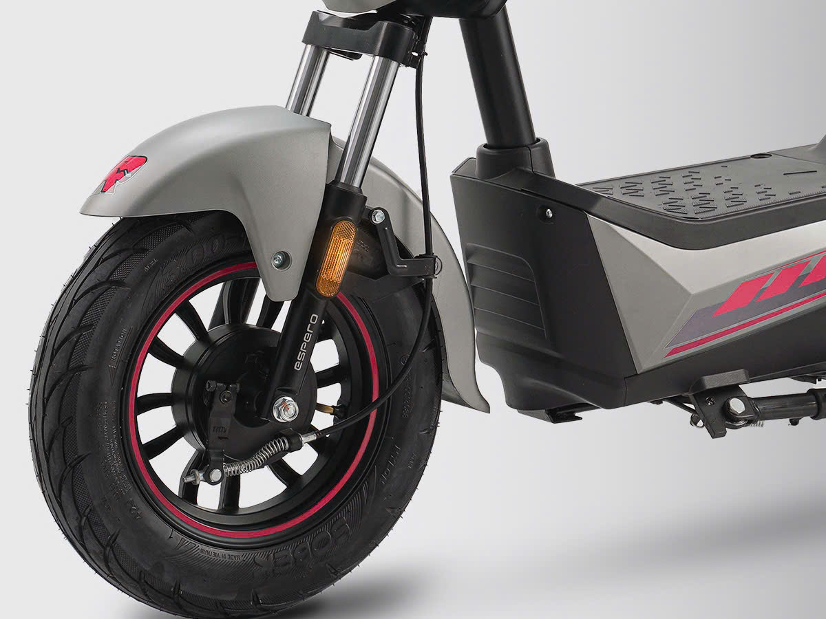 Bánh trước với các tính năng độc đáo mang lại tính tiện dụng và đảm bảo cho người dử dụng như: Vành đúc chắc khỏe, lốp không săm giúp bám đường tốt hơn, giảm xóc êm ái khi di chuyển trên mọi cung đường.